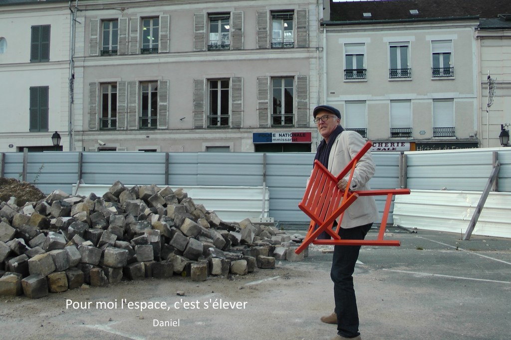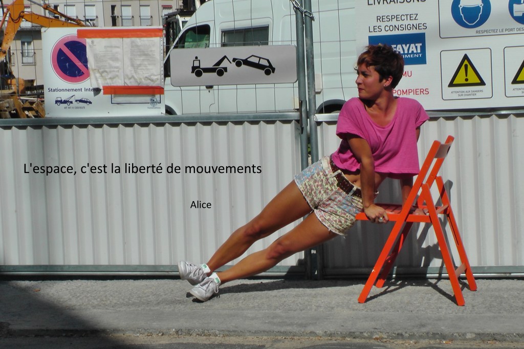 Chaque habitant et habitante et la chaise orange étaient invité-es à nous dire ce que l’espace pour eux/elles, représentaient.