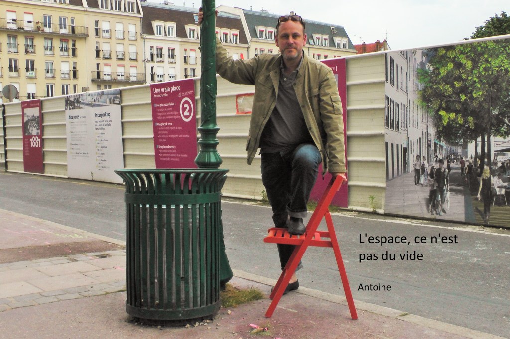 Lors d’une résidence artistique à Fontainebleau en 2017, collecte autour de la transformation d’une place publique –